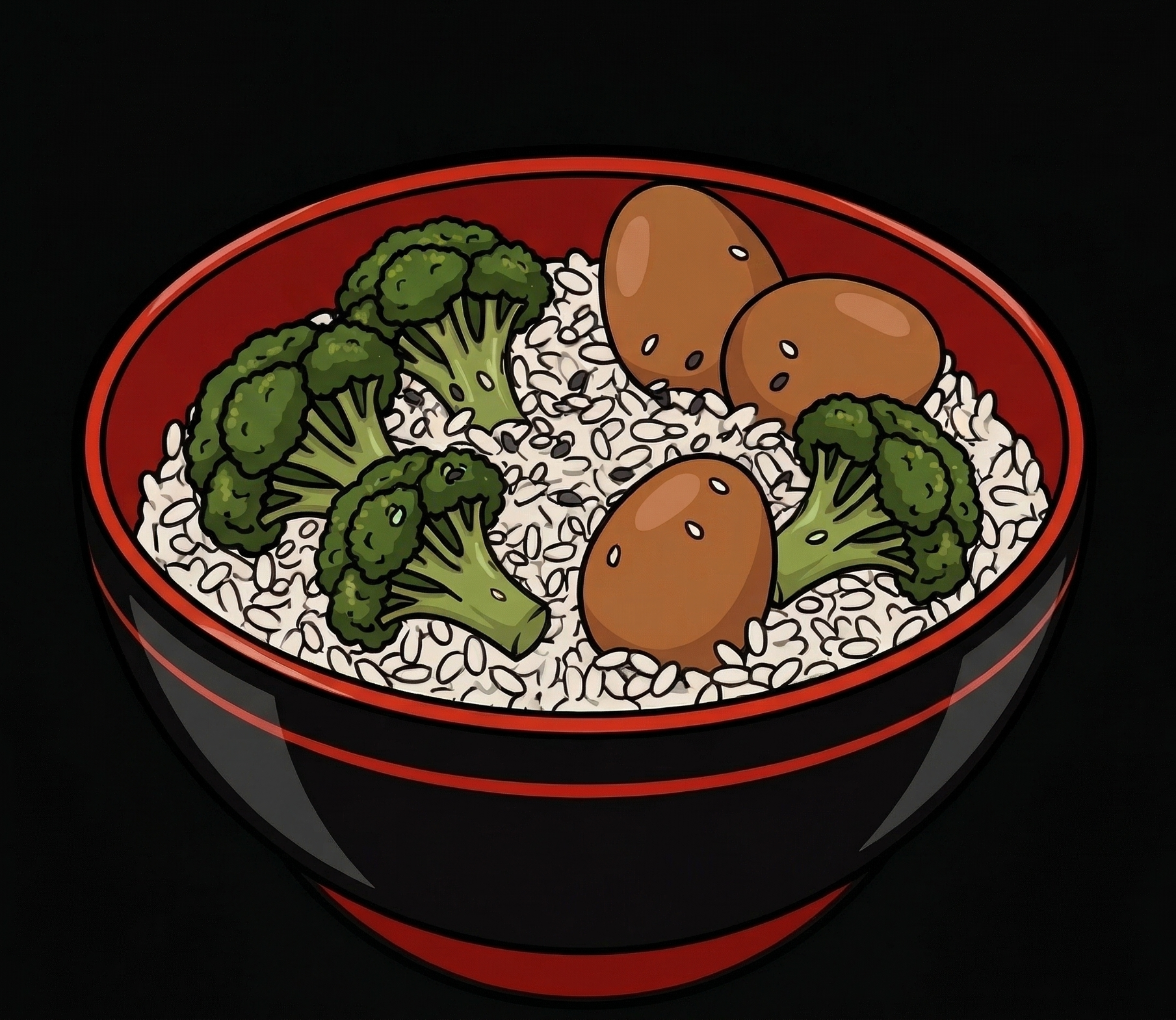 Riz vinaigré · Brocolis bio marinés · 3 oeufs bio marinés · Graines de sésame. Un seul plat, une seule obsession : la performance.